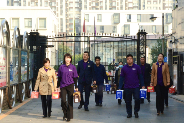 華騰美居酒店業主代表趙麗霞帶領管理團隊走進大望社區,為老人們送上牛奶、燕麥、面條等慰問品,將濃濃的關愛和重陽節的祝福送到老人面前。