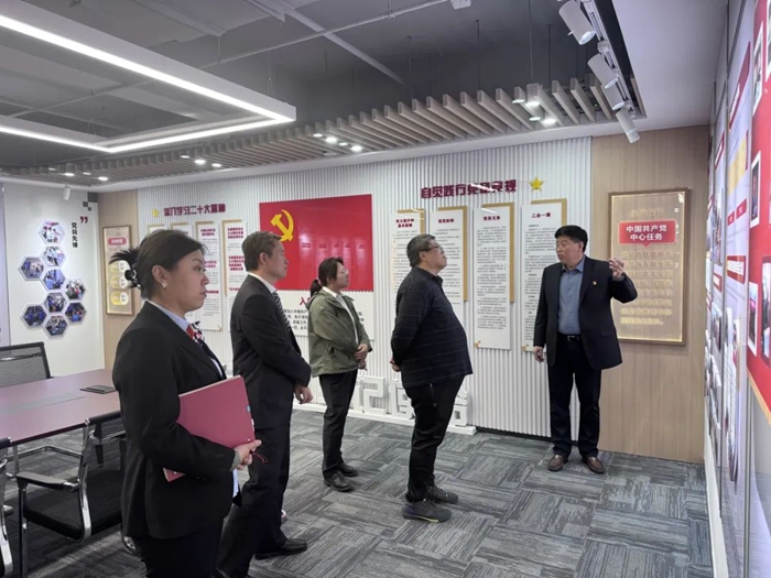 華騰大廈事業(yè)部黨支部的黨員同志們抱著潛心學習的心態(tài)走入海文大廈。大家首先參觀了海文大廈裝修改造后的房間、公共區(qū)域及服務(wù)配套場所。在參觀中,海文大廈負責人詳細介紹了大廈在黨建引領(lǐng)下的整體運營情況,重點講解了如何在日常經(jīng)營中充分發(fā)揮黨支部的戰(zhàn)斗堡壘作用和黨員的先鋒模范作用。