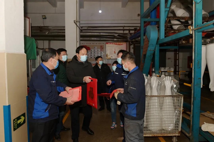 張時(shí)明一行考察了華騰橡塑公司生產(chǎn)現(xiàn)場(chǎng),華騰美居酒店的“暖心驛站”,親切慰問(wèn)堅(jiān)守在一線崗位的職工和困難職工代表,帶去慰問(wèn)品的同時(shí)也送上了親切的問(wèn)候和真情關(guān)懷。