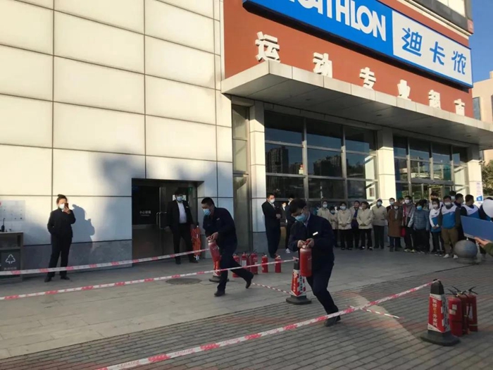 近日,華騰新天地項目部和迪卡儂員工共69人,共同開展了“實戰(zhàn)”消防演練。兩個單位員工混編成6個小組,互相配合熟練使用各類消防器材,演練取得圓滿成功。