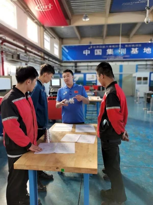和王展超經(jīng)歷相似,韓方旭,機(jī)電一體化專業(yè)技師畢業(yè)后,也選擇了留校任教,反哺母校教育事業(yè)。他們精心培養(yǎng)的選手殷成浩、謝虎、王帥等,不負(fù)眾望,在世界技能大賽上屢創(chuàng)佳績。數(shù)控車選手王帥在43屆世界技能大賽中獲優(yōu)勝獎,機(jī)電一體化選手殷成浩、謝虎在45屆世界技能大賽中獲銀牌。他們繼承了導(dǎo)師的衣缽,選擇留校,繼續(xù)培養(yǎng)世賽選手。